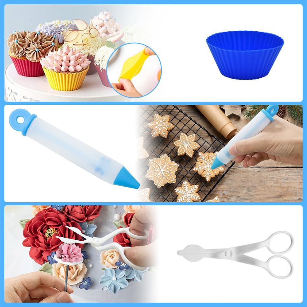 A csomag minden olyan elemet tartalmaz, ami a precíz és látványos díszítéshez szükséges: fúvókák, formák, habkártyák, szilikon muffinformák, forgatható tálca és még sok más kiegészítő gondoskodik a kreativitás szabadságáról.
