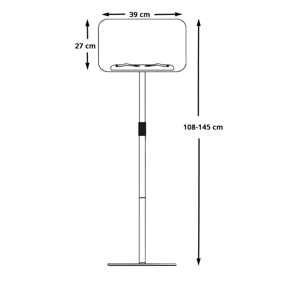 Az állvány masszív fém alapja és minőségi anyaghasználata biztosítja a stabilitást és a tartósságot. A modern, minimalista design nemcsak funkcionális, hanem esztétikus megjelenésével is hozzájárul a munkakörnyezeted stílusához.
