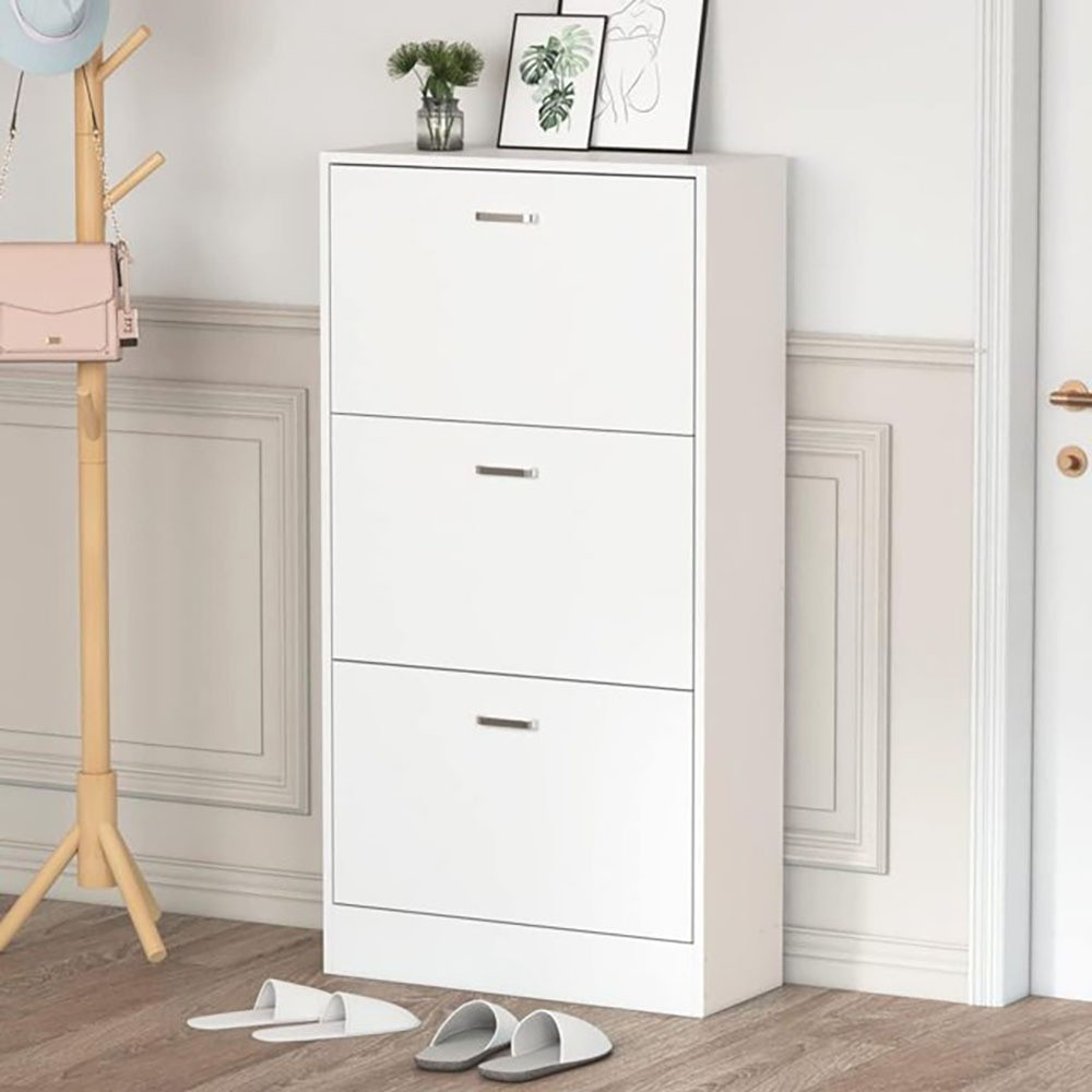 A letisztult fehér cipősszekrény modern megjelenésével tökéletesen illeszkedik bármilyen enteriőrbe. Három rekeszes kialakítása ideális megoldás, hogy minden cipőnek legyen helye, miközben rendezetté és átláthatóvá varázsolja a teret.