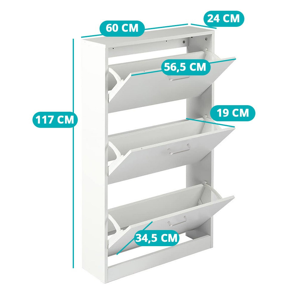 A 3 különálló rekeszben rendszerezetten tárolhatók a cipők, megkönnyítve a reggeli készülődést. A rekeszek praktikus mérete (56x34x19 cm) biztosítja, hogy akár nagyobb méretű lábbelik is kényelmesen elférjenek.