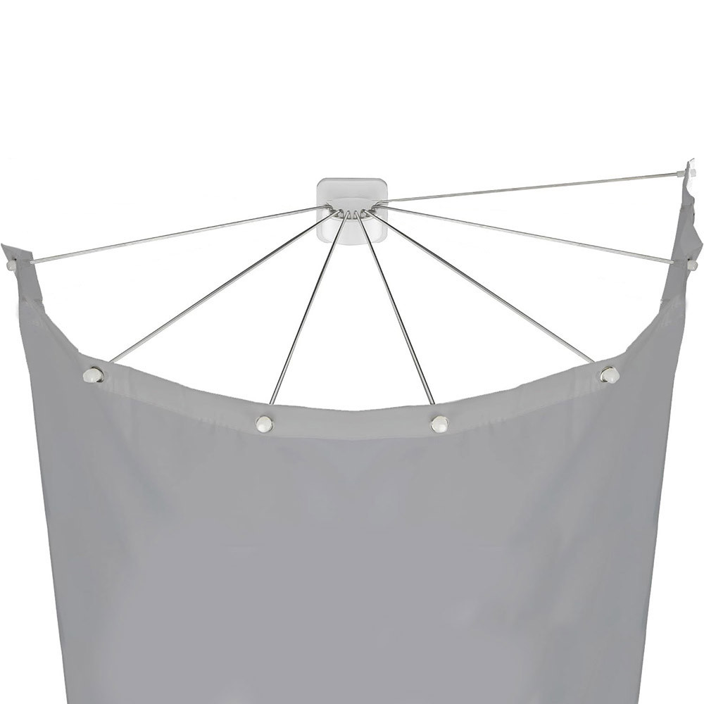 Az ernyő alakú kialakítás különösen előnyös kis méretű fürdőszobákban. Használaton kívül a tartó könnyedén oldalra fordítható, így helyet spórolsz, amikor épp nincs rá szükség.