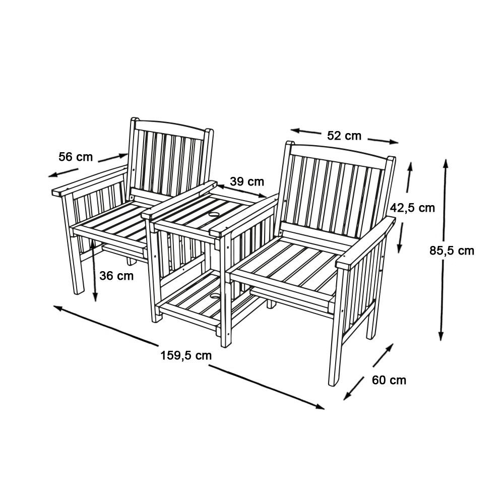 A fixen egybeépített, kétüléses kültéri garnitúra kiváló választás, ha a kertben vagy teraszon keresel stílusos, praktikus megoldást a nyári estékhez. A bútordarab nemcsak kényelmes, de garantáltan feldobja a szabadtéri hangulatot is. A székek és a középen elhelyezett asztal egyetlen egységet alkotnak, így nem mozdíthatók külön-külön.