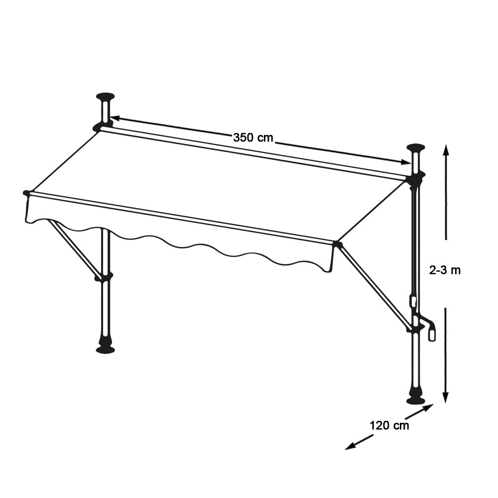 A tekerőkar segítségével az árnyékoló 120 cm-ig kitekerhető, magassága pedig 2 és 3 méter között szabadon állítható. A kar bármelyik oldalra felszerelhető, így igazítható a rendelkezésre álló helyhez és egyéni igényekhez is.