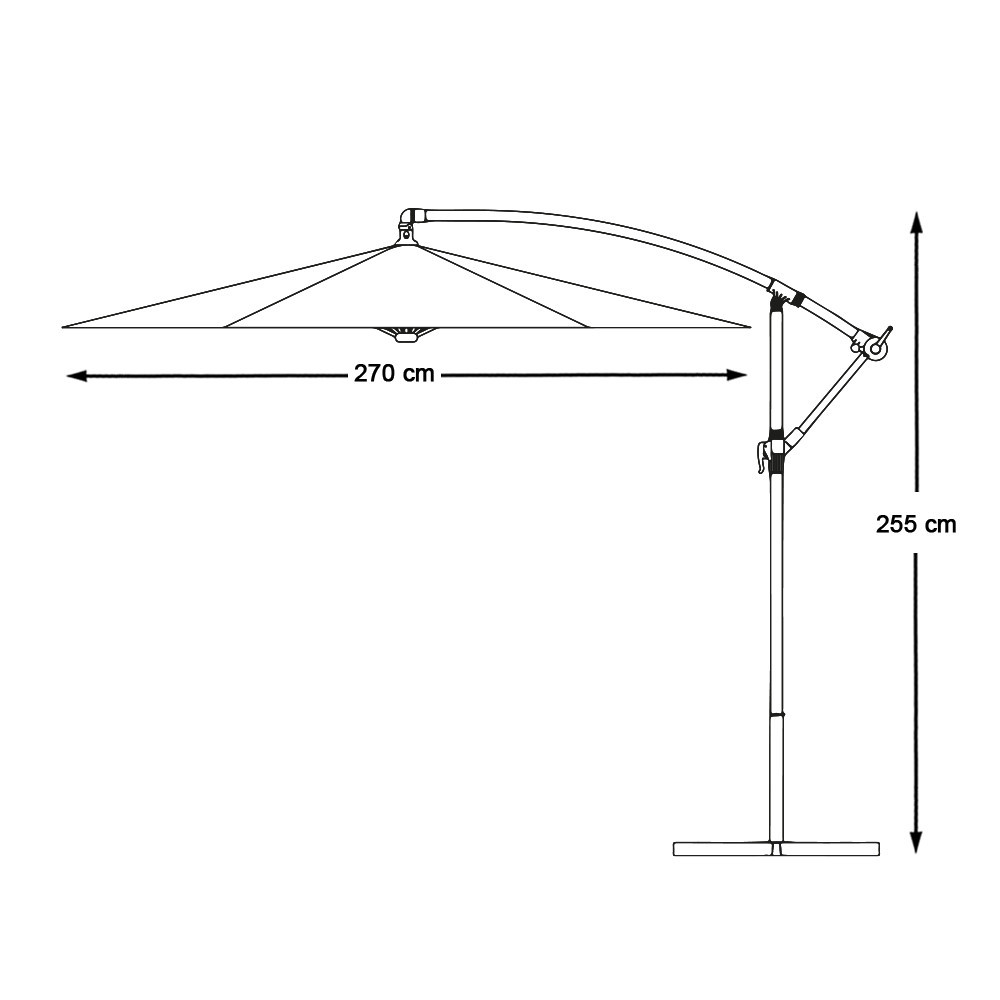 A 2,7 méteres átmérőjű napernyő elegáns megjelenésével jól illeszkedik bármilyen kültéri bútorhoz. Kiemelkedő UV-védelme védi a bőrt a nap káros sugaraitól, így gondtalanul élvezhető alatta a nyár.