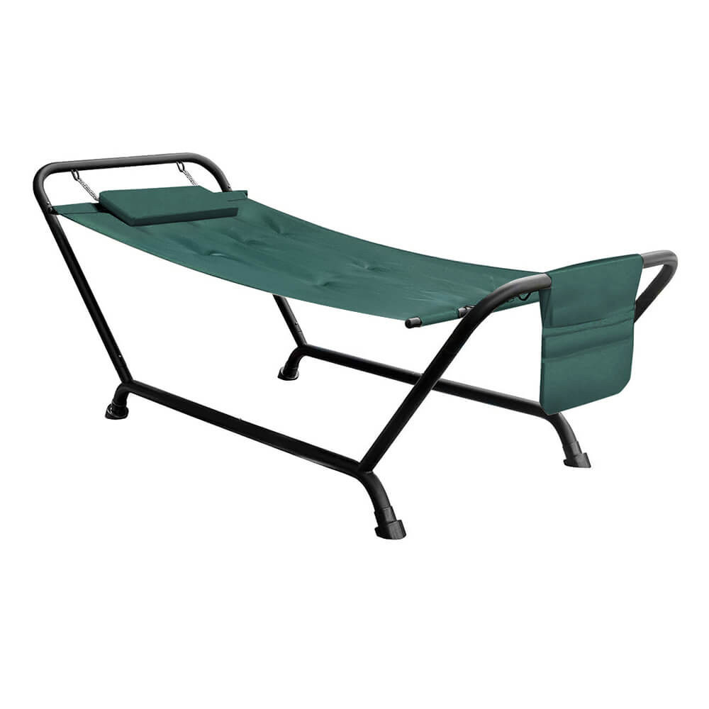 Két lábas, fém tartóállványa rendkívül stabil és strapabíró, biztosítva a biztonságos és kényelmes használatot. Az állvány egyszerűen összeszerelhető és szétszedhető, így könnyedén magaddal viheted nyaraláshoz vagy szükség szerint elpakolhatod a szezon végeztével. A függőágy anyaga puha és légáteresztő, garantálva a maximális komfortot a forró nyári napokon is.