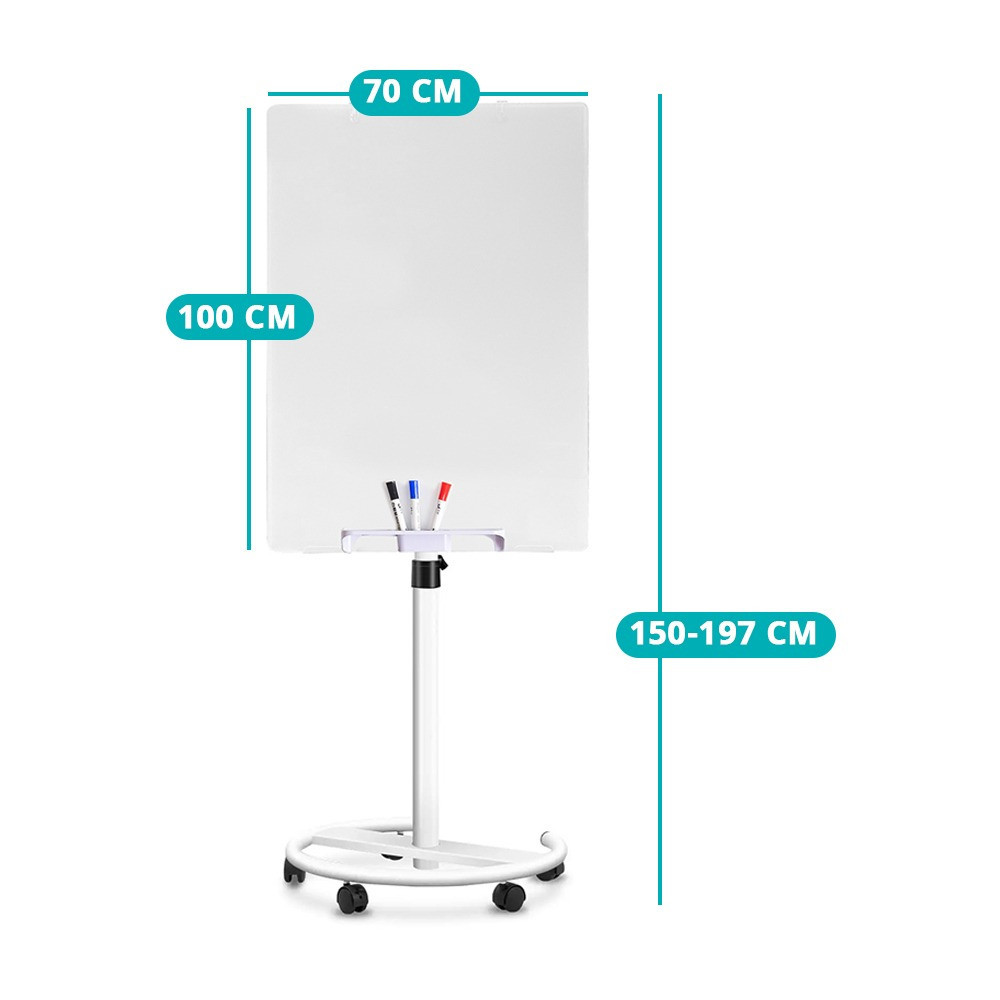 A flipchart tábla mágneses felülete lehetővé teszi, hogy papíralapú jegyzeteket, grafikonokat vagy egyéb dokumentumokat rögzíts rajta, miközben filctollal is írható, így egyszerű és hatékony eszköz a kommunikációhoz. A fékezhető kerekek biztosítják a stabilitást és a könnyű mozgathatóságot, így bármilyen környezetben rugalmasan használható.