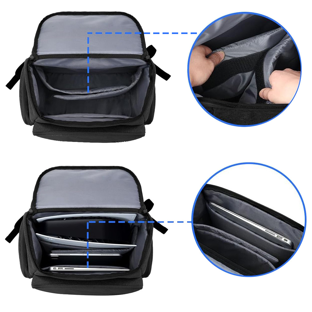 A több rekeszes kialakítás lehetővé teszi, hogy laptopot, könyveket, kiegészítőket vagy akár játékvezérlőket rendezetten tárolj. A párnázott belső rész megóvja a sérülékeny tárgyakat a karcolásoktól és ütődésektől.