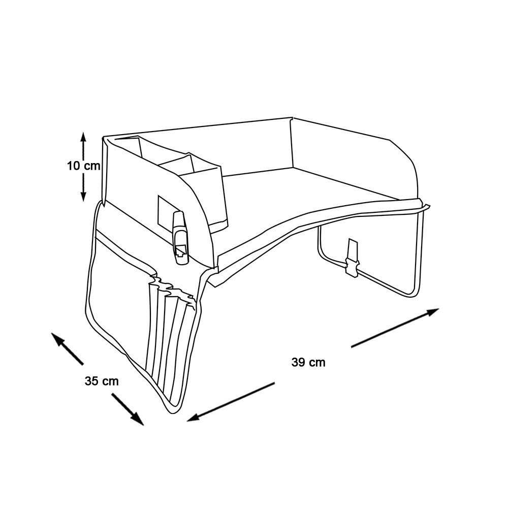 Hosszabb utak során a hordozható gyerekasztal praktikus megoldást nyújt a játékok, rajzeszközök vagy akár egy tablet tárolására. A magas perem megakadályozza, hogy a tárgyak leessenek, így a gyerekek nyugodtan játszhatnak, rajzolhatnak vagy nézhetnek mesét.
