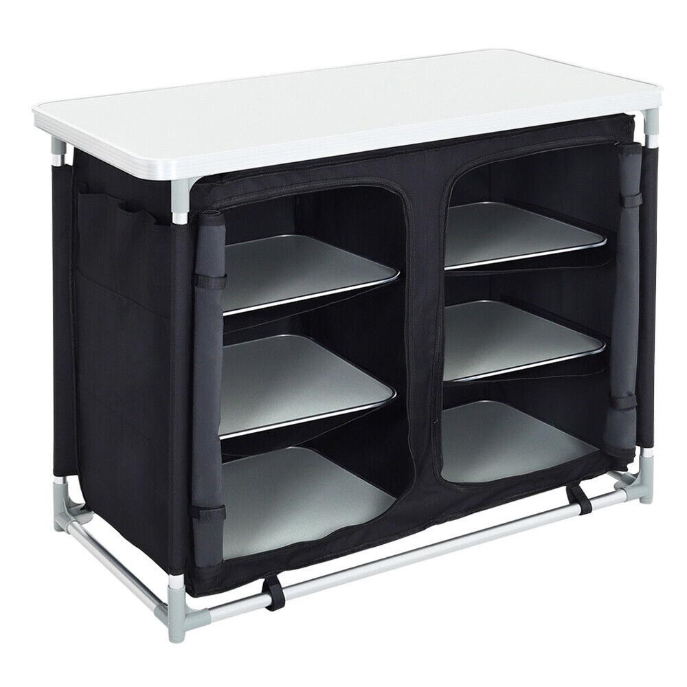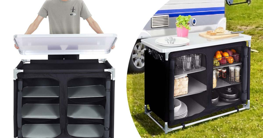 Hordozható, polcos tárolónk ideális választás, ha a szabadban is igényled a rendezettséget. Nagy asztallapja és több tárolófelülete lehetővé teszi, hogy minden kéznél legyen egy kültéri főzés során.