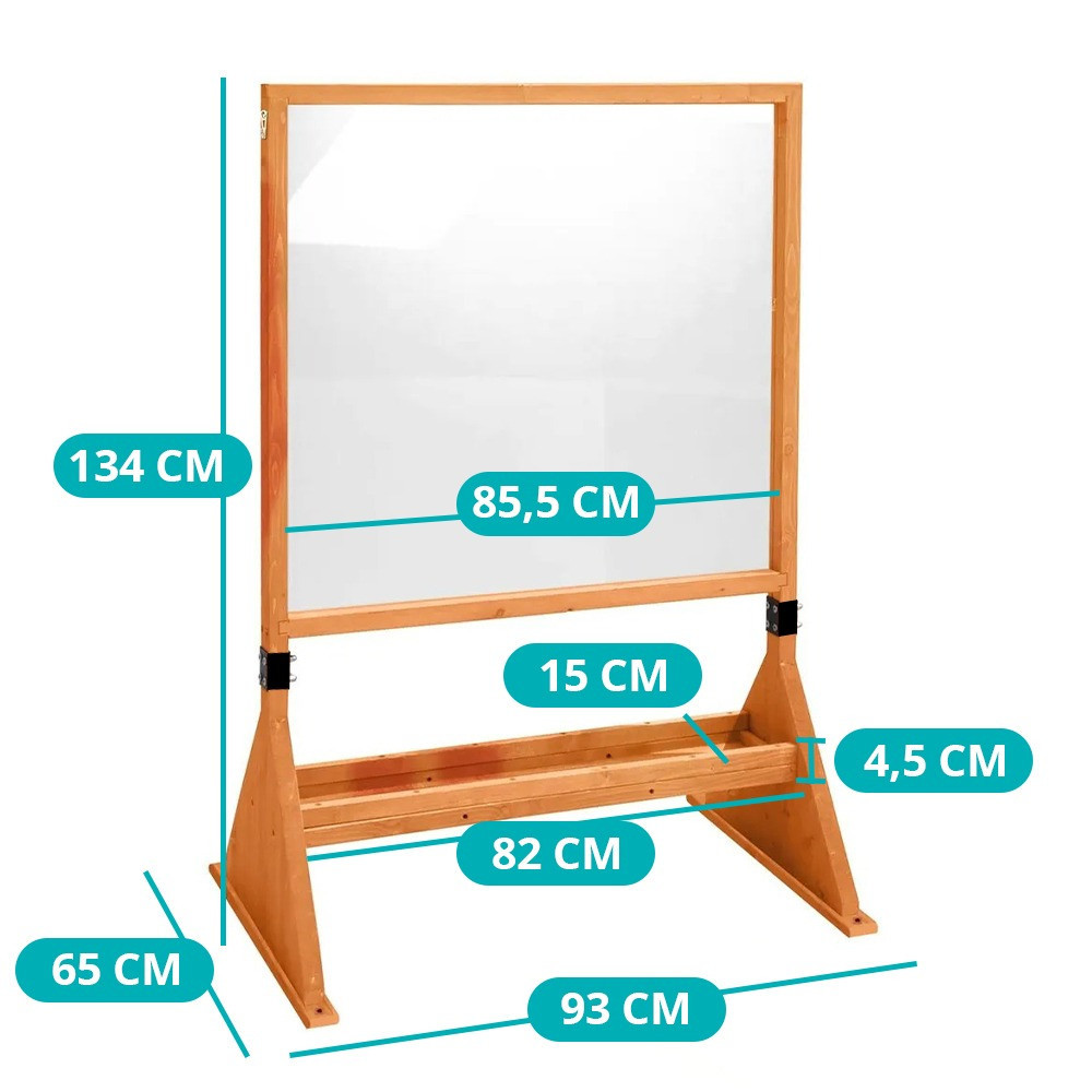 A rajztábla stabil fa állvánnyal rendelkezik, amely biztosítja a könnyű rögzítést, így az alkotás mindig kényelmes és biztonságos. Az állvány kompakt kialakítása lehetővé teszi, hogy bármilyen helyszínen egyszerűen felállítható legyen, legyen az a nappali, az udvar vagy akár egy park.
