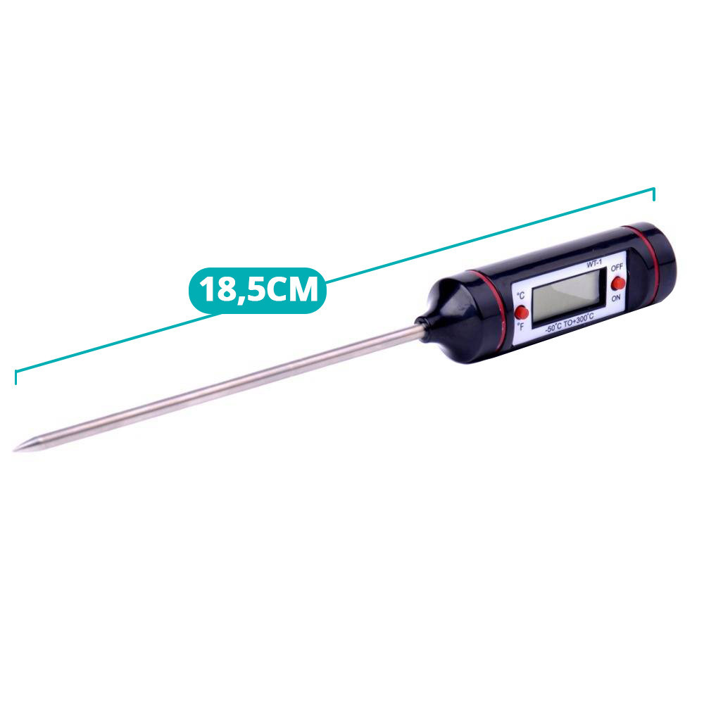 A csomag tartalmazza a digitális maghőmérőt. Mérési pontossága ±1 °C, így folyékony, puha és szilárd anyagokhoz egyaránt ideális. Kis helyen elfér, és pillanatok alatt használatra kész.