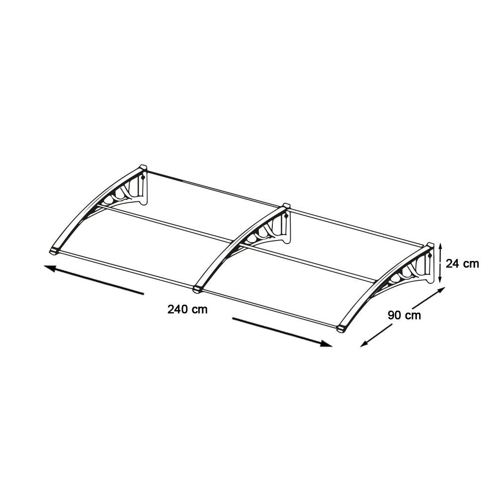 A csomagban található rögzítőelemek segítségével az előtető gyorsan és egyszerűen felszerelhető. Több egység is egymás mellé illeszthető, így hosszabb bejáratok vagy teraszok fölé is telepíthető, akár egyedi méretre szabva. A 24 cm hosszú fali rögzítőelemek stabil és biztonságos rögzítést garantálnak.