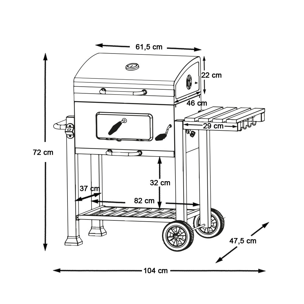 - Grill fedél mérete: 61,5x46x22 cm