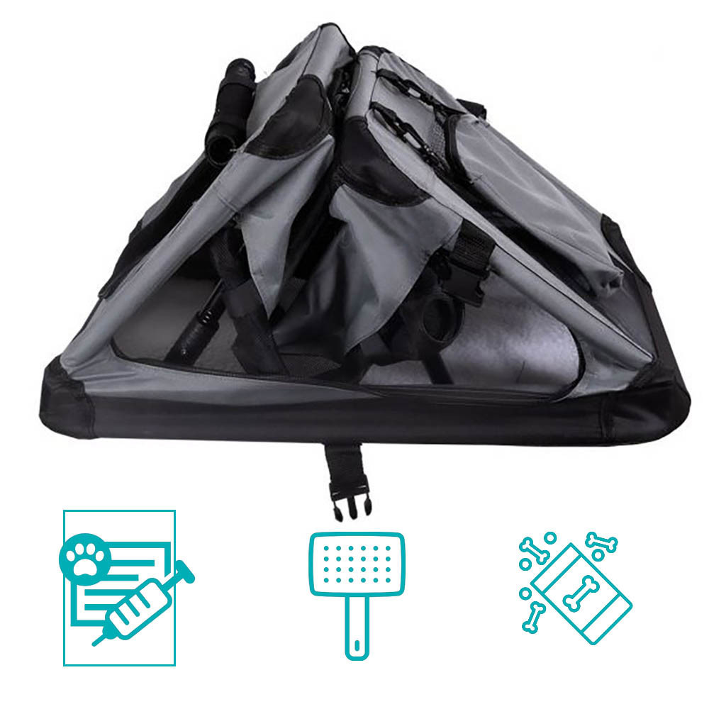 A táska oldalán elhelyezett zsebben tárolhatod a legfontosabb apróságokat, például jutalomfalatokat, pórázt vagy oltási könyvet. Strapabíró fogantyúja és kényelmes vállpántja egyszerű hordozást tesz lehetővé.