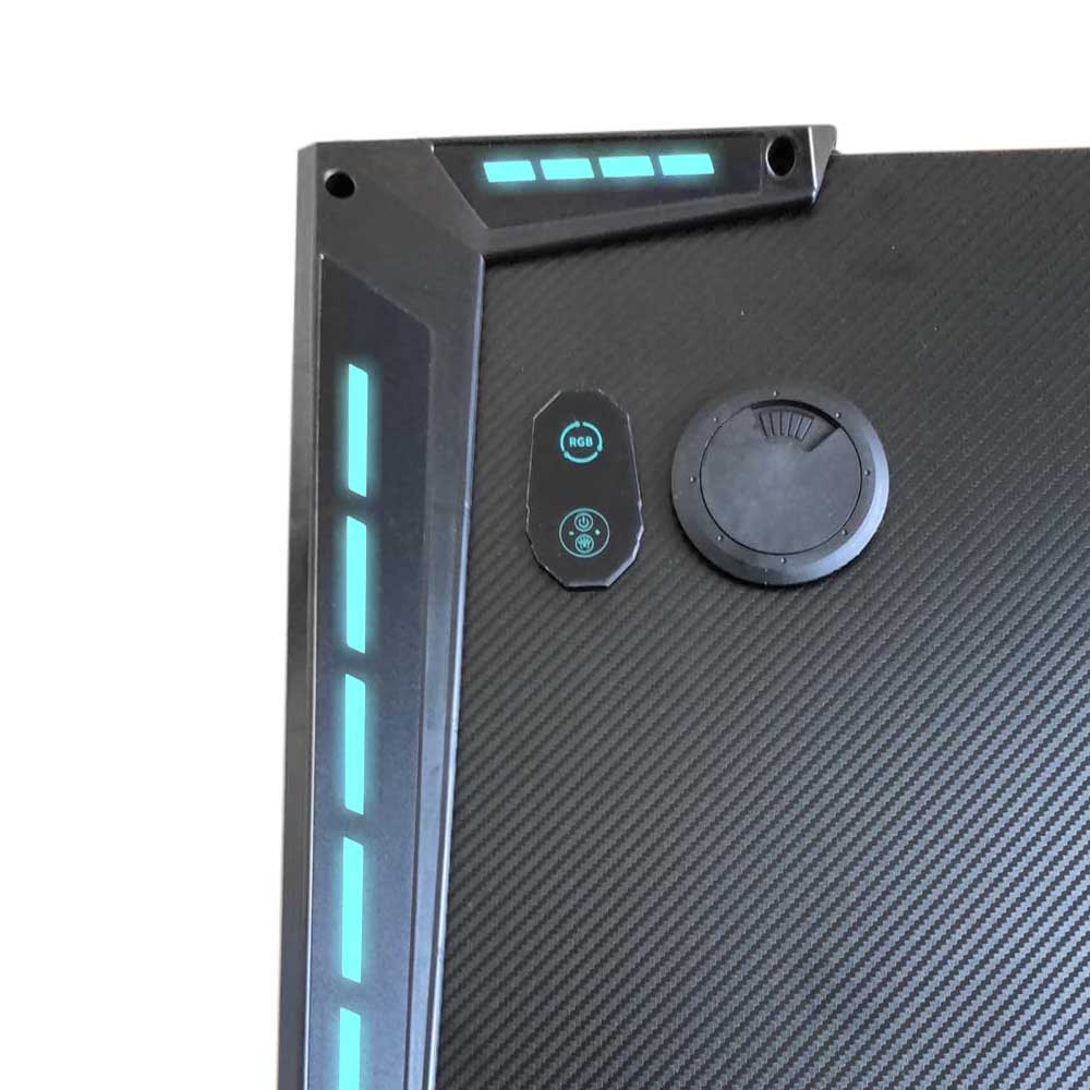 A karbonszálas textúrájú asztallap nemcsak stílusos, hanem praktikus is. A felület egérpadként is használható, így pontosabb mozdulatokat tesz lehetővé a játék során. Az anyag ellenáll a karcolásoknak és könnyen tisztítható, így hosszú távon is megőrzi minőségét.