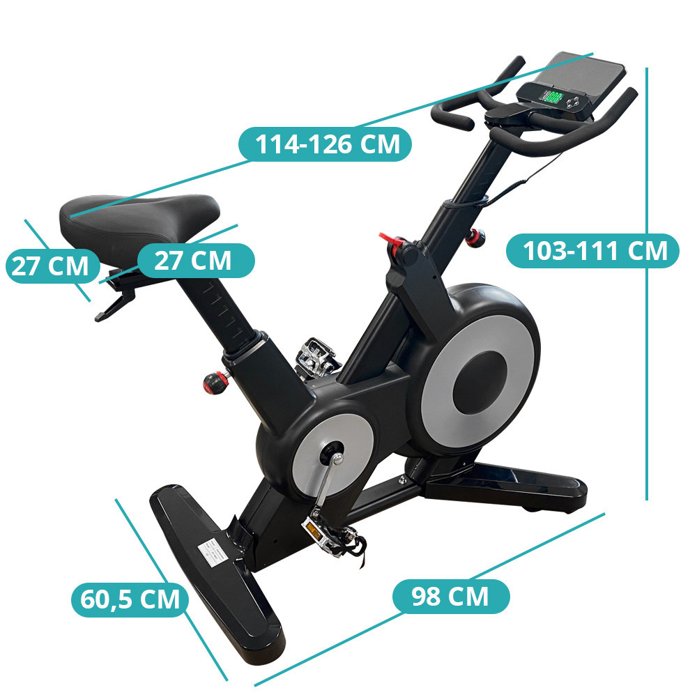 A spinning kerékpár robusztus váza kiváló stabilitást nyújt még nagy intenzitású edzések során is. Az első és hátsó stabilizátorok, valamint a csúszásgátló lábak garantálják, hogy a bringa a helyén maradjon, bármilyen keményen is hajtasz. A piros ellenállásgombbal könnyedén szabályozhatod az edzés intenzitását. Ez a mechanikus rendszer valósághű, sima pedálozási élményt nyújt.