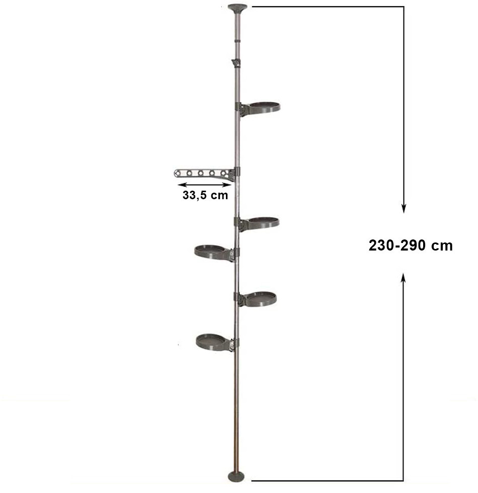 Az állítható magasság (230–290 cm) lehetővé teszi, hogy a tartóállványt akár nappaliba, akár hálószobába vagy erkélyre is tökéletesen beilleszthesd. A kis helyigényű kialakítás miatt kis lakásokban is ideális.