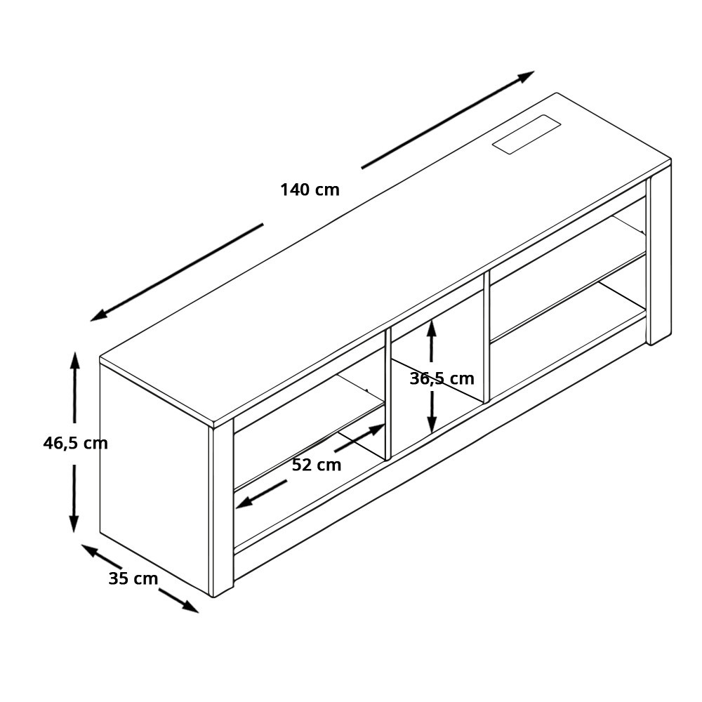 A polcos kialakítású állvány rengeteg helyet kínál a médiaeszközök, távirányítók, játékkonzolok és egyéb kiegészítők számára. Az állvány középső és alsó tárolóhelyei lehetővé teszik a rendszerezett tárolást, míg a beépített konnektorok és USB 2.0 csatlakozók egyszerűvé teszik az eszközök töltését és csatlakoztatását.